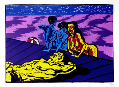 Soubor grafik Summer vibes se snaží zachytit atmosféru letních dnů, strávených u bazénů koupaliště. Na tomto místě, kde dochází k prolínání veřejného s tím soukromým, se vlastní intimita těla dostává do konfrontace se sdíleným, komunálním prostorem. Jednotlivec voyeuristicky nahlíží na své tělo v kontextu těch ostatních, porovnává se s nimi, vyměňuje si s nimi nedotknutelné pohledy. Při jejich střetu budují vzájemné, nevyslovené touhy napětí blížícího se kontaktu. Bez iniciativy však zůstávají nenaplněné a nezbývá jim nic jiného, než jen přihlížet.