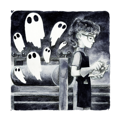 Malý duch prožívá svůj den. Jak prožíváš ty ten svůj? Krátký, tichý komiks vybízející čtenáře*ky všech věků k zamyšlení se nad pochody každodenního života.