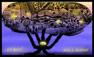 Příroda je jedna z věcí, která je stále přítomna. Můžeme stavět různé věci - jednoho dne vše zanikne, ale příroda vždy přetrvá. Jsem schopná komunikovat s bytostmi mimo tento svět. Chci jim ukázat tu jedinou věc, kterou nemají - přírodu. A tak tady teď pracuji na svém projektu…A nevím no, nevypadá to jako nic moc, ale ta představa…nikdy předtím neviděli přírodu. Snažím se dát jim pozvánku a virtuální prohlídku toho, jaké to tady je a co mohou očekávat, když přijdou. Navíc jsem je sem také nakreslila, aby si dokázali představit, jak je vše veliké a mohli lépe porozumět, jaké to tady je.